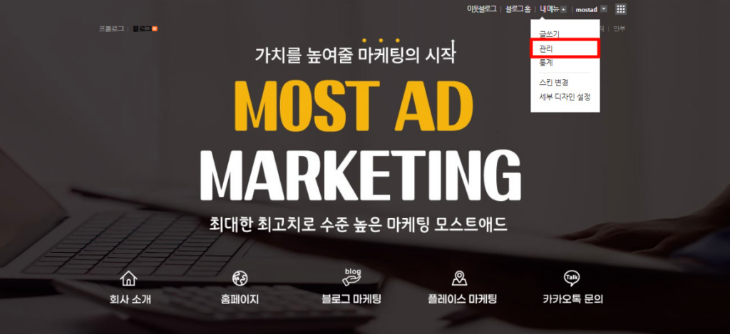 ​그러면 이렇게 블로그 관리 탭이 나올 텐데