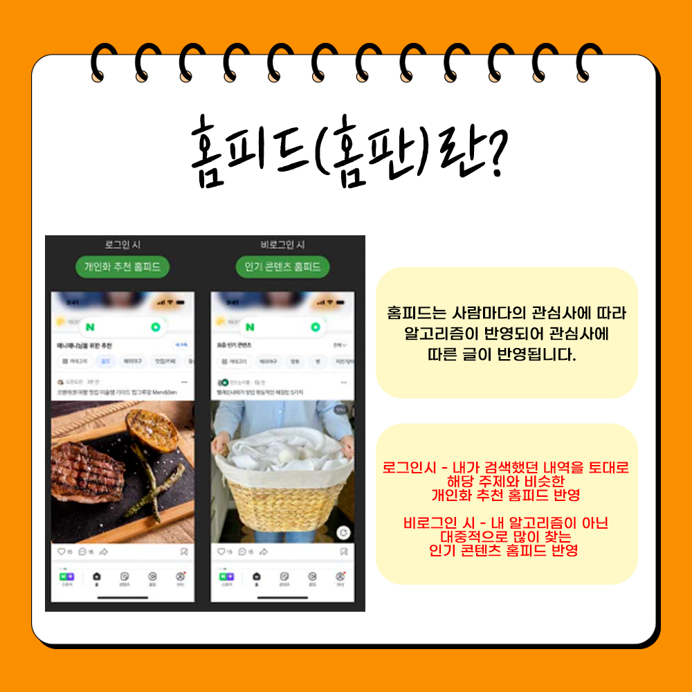 네이버 홈판 즉, 홈피드는 글이