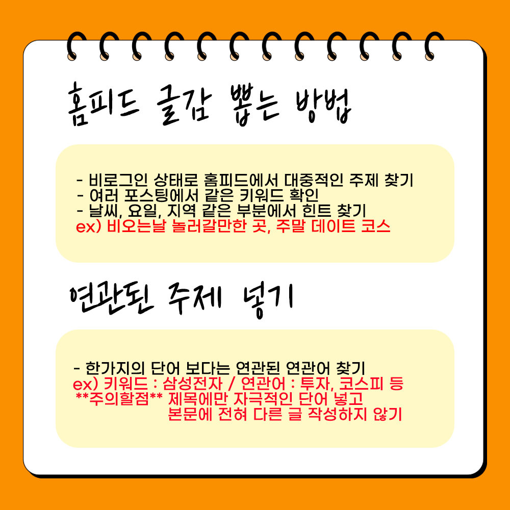홈피드 글감 뽑는 방법