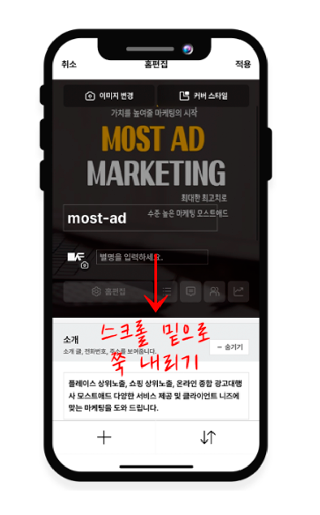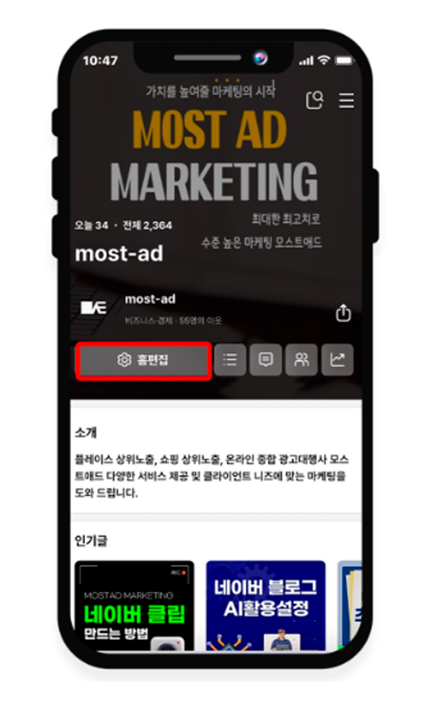 홈으로 들어가서 홈편집을 눌러주면 됩니다.